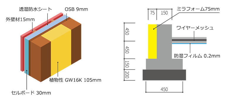 柱や梁など構造体の外から断熱材を施工し、建物全体を覆う「外張り断熱」と、「基礎断熱」の2種類の断熱。