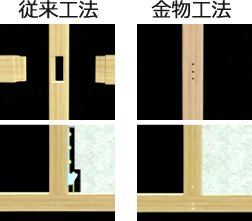 しかし、在来軸組工法では、柱と梁の仕口加工として、柱に2方向以上の彫り込み(断面欠損)が行なわれていました。
