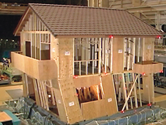 家の強度は、そのまま生命の安全につながります。従来の軸組工法と、テックワン金具を使用した住宅で、1995年の阪神淡路大震災を忠実に再現した三次元大振動試験によって、実物大の家を実際に揺らして、損壊の程度を比較。