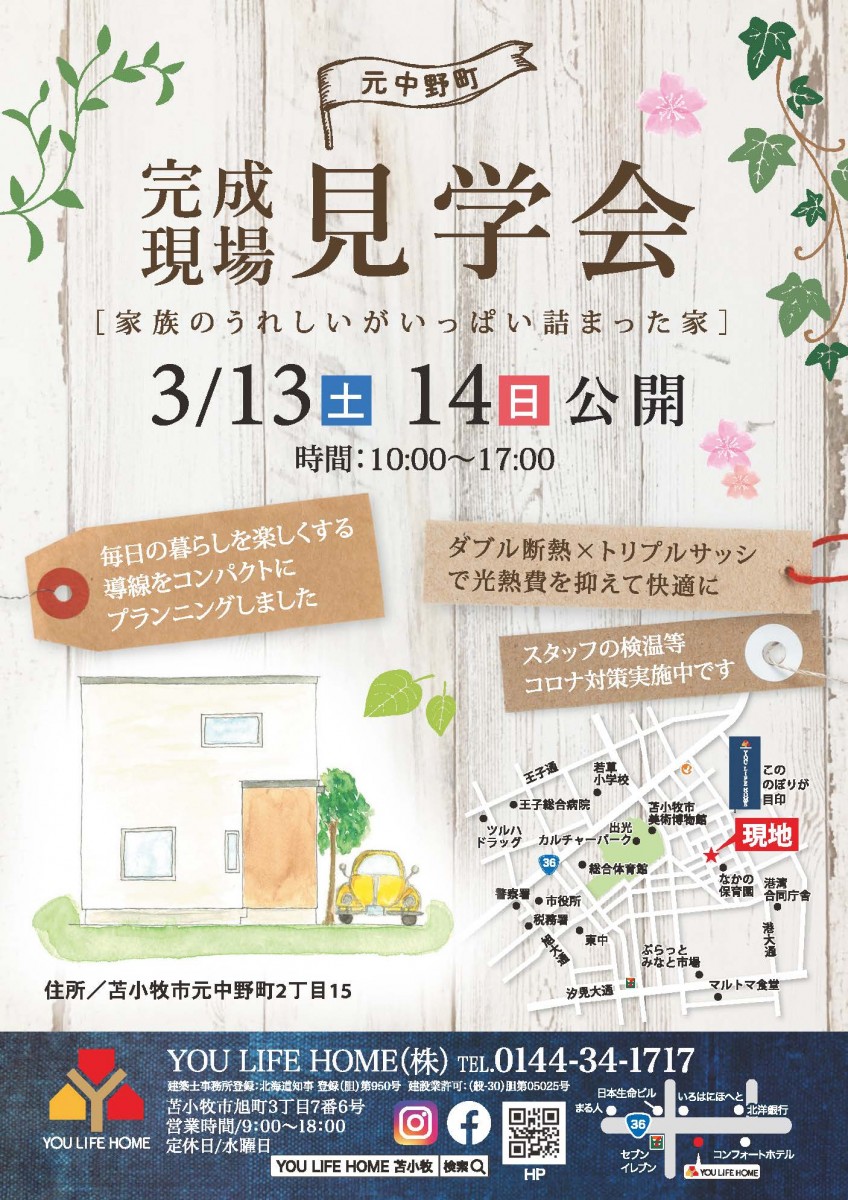 3月13日/14日の2日間限定で完成現場を公開致します。